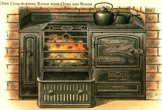 In contrast, the through-terrace houses had a backyard, and windows at the back allowing better ventilation. These dwellings were designed for families, and would have had four rooms, two downstairs and two bedrooms above. If the residents were lucky they might have their own yard and privy; although, I remember in our first house (on Airey Street) the yard (and privy) was shared with three or four other houses. In the better quality housing the kitchen might have an open range used for cooking, and to provide heat and hot water; perhaps similar to the one in the illustration above. After his marriage to Sarah, John and his family would live in such through-terraced houses on Heap Street, Greenacres Road and Greenwood Street (see below).